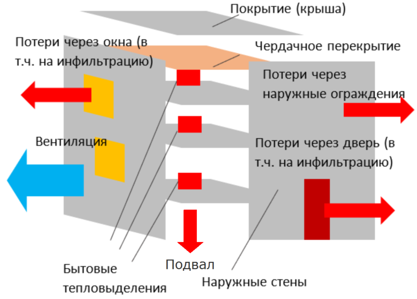 Рис. 5 Учитываемые параметры теплопотерь здания Digital Heat