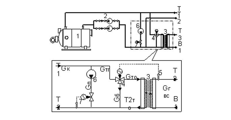 Gб — байпассируемый расход греющей котловой воды.