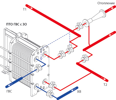 Среди двухступенчатых схем наибольшее распространение в России получила двухступенчатая смешанная схема подключения ГВС.