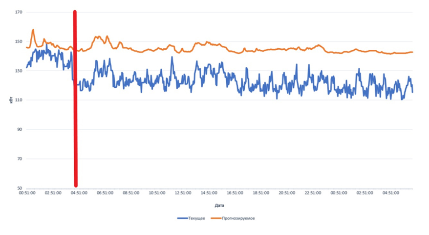 График демонстрирует прогнозируемое и фактическое энергопотребление. Отклонение не превышает 3,7% — это подтверждает высокую точность наших расчётных алгоритмов.