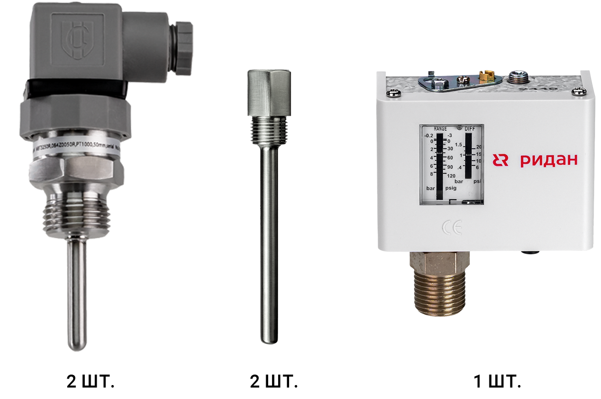 Ридан 333U2003R — Комплект КИПиА для модуля ГВС_3: MBT3250R, гильзы, KPI35R | 100, 100 мм | Pt1000 | 100 мм | — | ||||