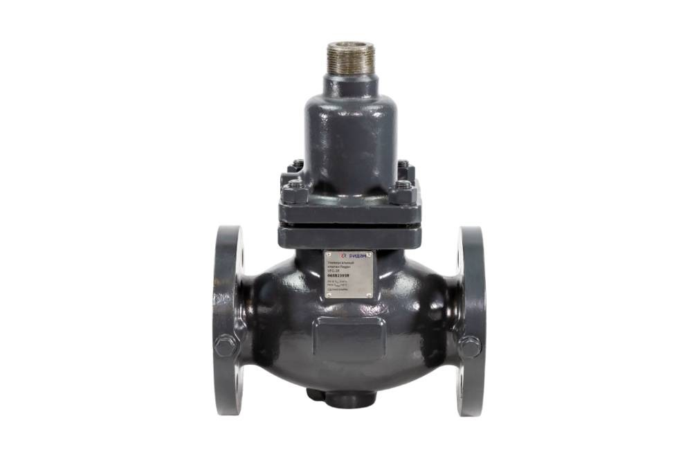 Клапан универсальный Ридан VFG-2R фланцевый, разгруженный для применения с регуляторами давления, перепада давления, температуры; регулируемая среда – вода и растворы гликоля до 30 %; PN = 16 бар; материал корпуса – углеродистая сталь.