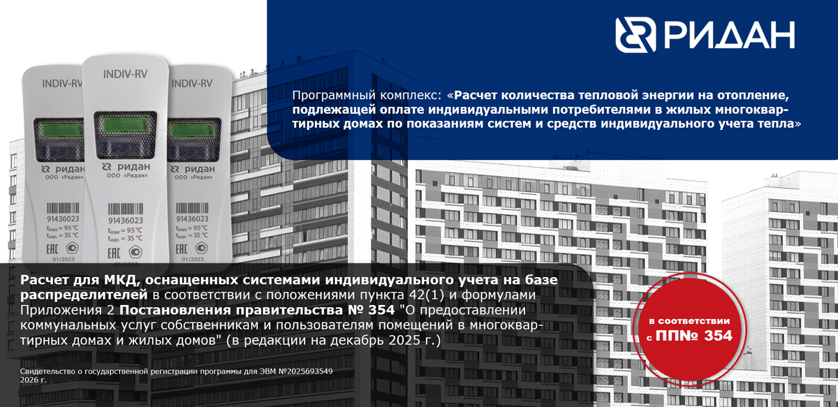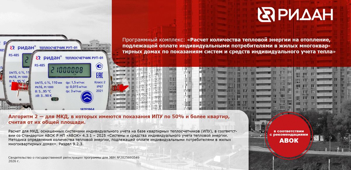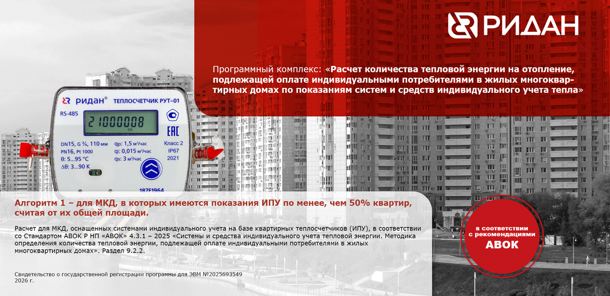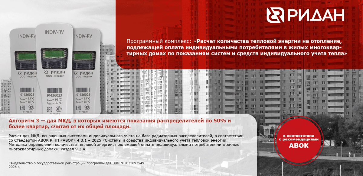 Расчет для МКД, оснащенных системами индивидуального учета на базе квартирных теплосчетчиков (ИПУ) и распределителей, в соответствии со Стандартом АВОК Р НП «АВОК» 4.3.1 – 2025 «Системы и средства индивидуального учета тепловой энергии. Методика определения количества тепловой энергии, подлежащей оплате индивидуальными потребителями в жилых многоквартирных домах».