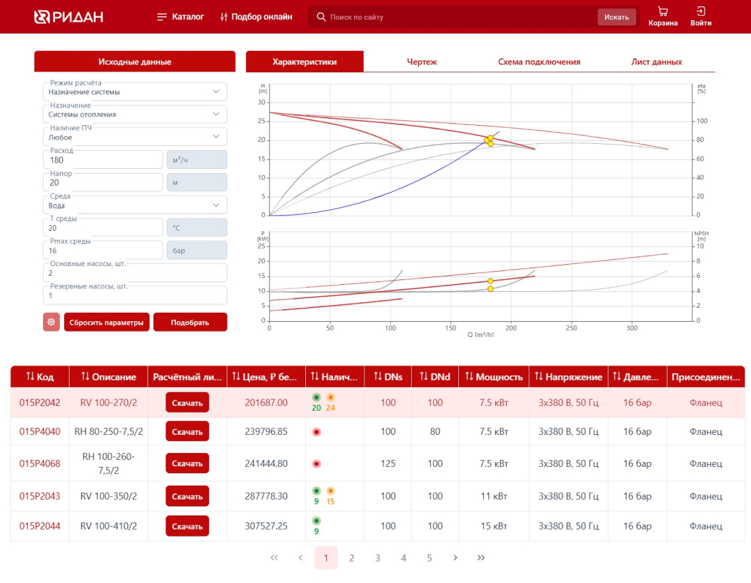 Подберите насосы Ридан для вашего проекта всего за пару минут.