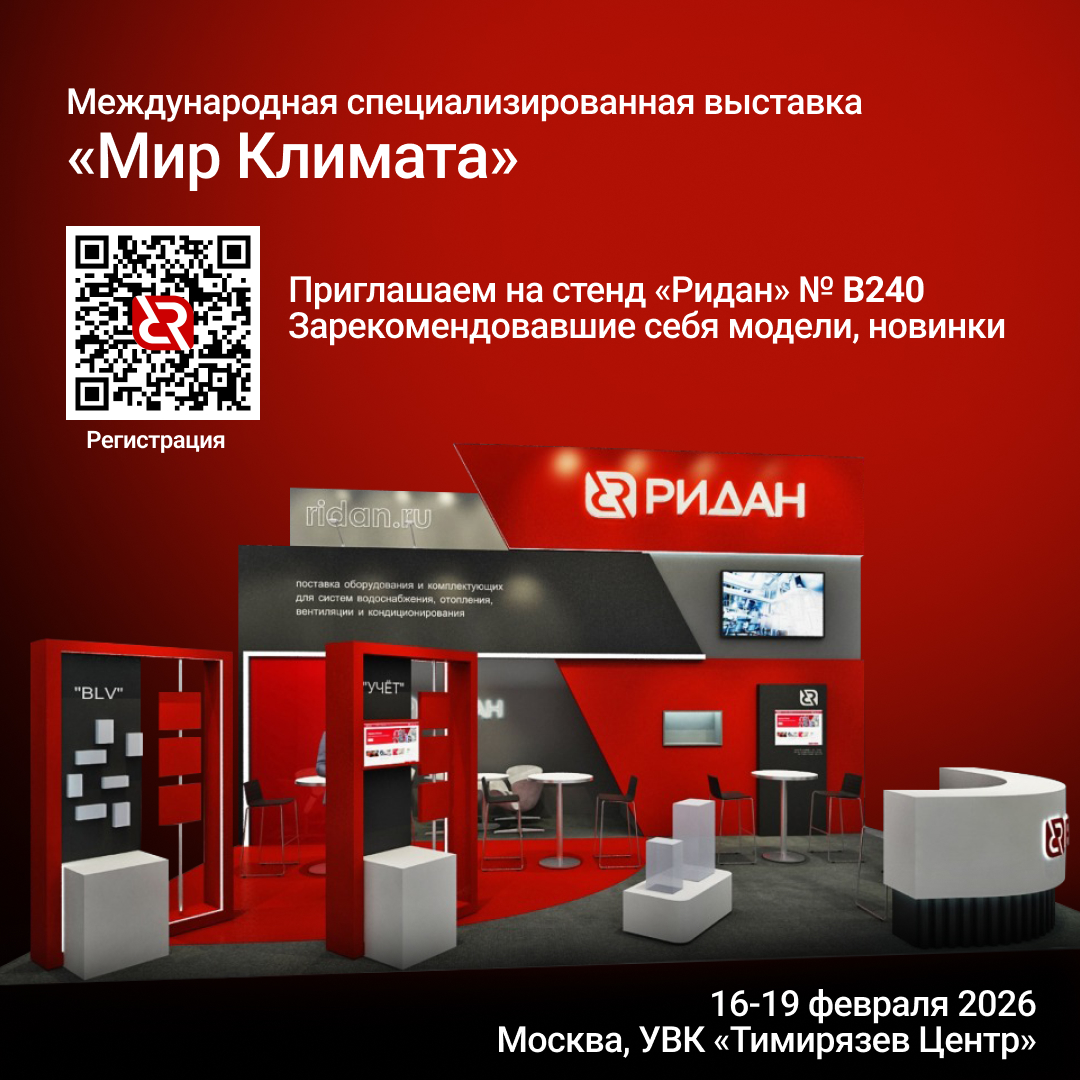 Компания «Ридан» приглашает вас на крупнейшую отраслевую выставку «Мир Климата 2026», которая пройдет в Москве с 16 по 18 февраля в УВК «Тимирязев Центр».
