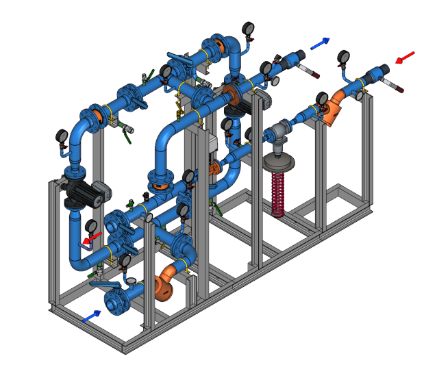 Блочный тепловой пункт АУУ-C-080-080-P-R: для управления системой отопления (вентиляции) с РПД и трехходовым РК, Ду 80, насосы 2х100%
