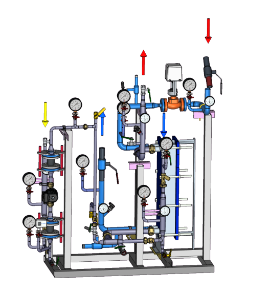 Блочный тепловой пункт БТП-DS-040-025-C-S: для одноступенчатого ГВС, Ду 40, одинарный насос