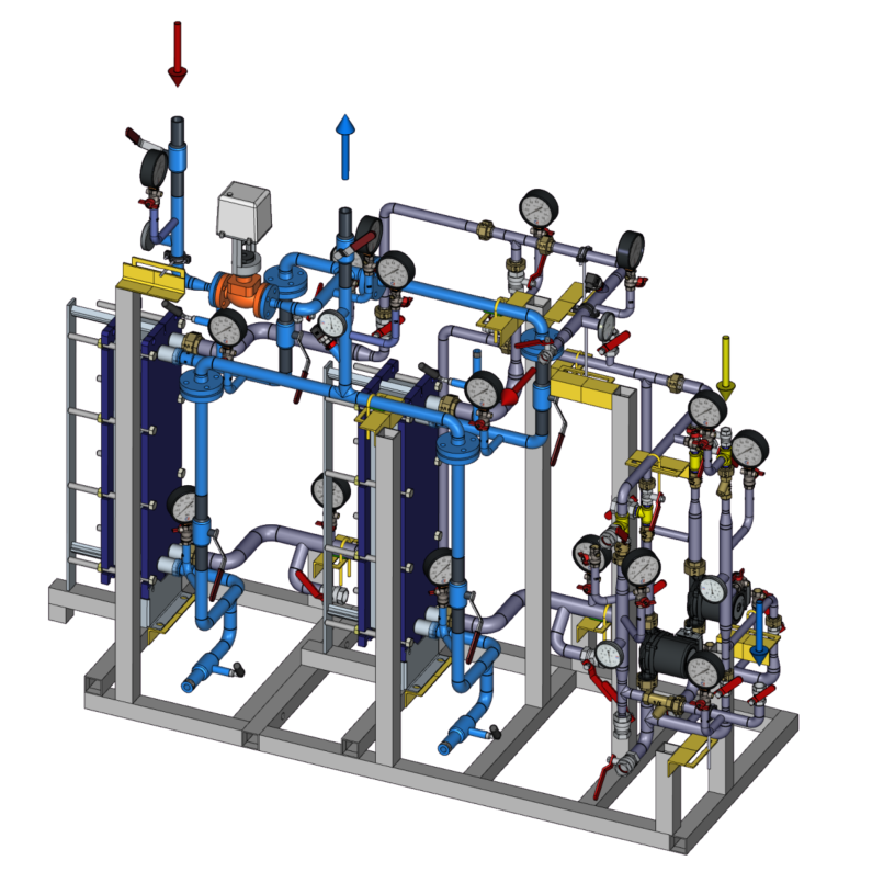 Блочный тепловой пункт БТП-DSR-040-032-C-R: для одноступенчатого ГВС с резервом ПТО, Ду 40, насос 2х100%