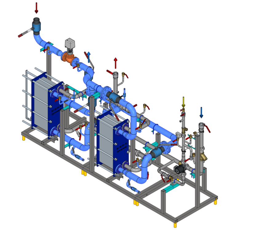 Блочный тепловой пункт БТП-DSR-100-080-C-S: для одноступенчатого ГВС с резервом ПТО, Ду 100, одинарный насос