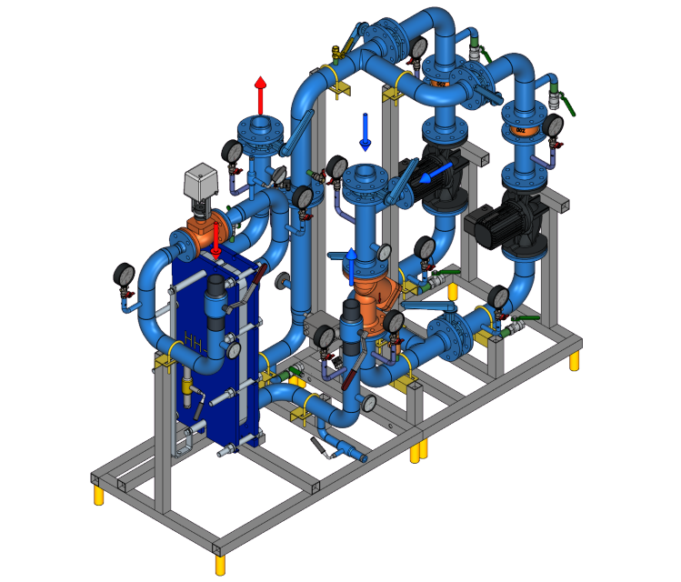 Блочный тепловой пункт БТП-HS-050-080-C-R: для системы отопления (вентиляции), Ду 80, насосы 2х100%