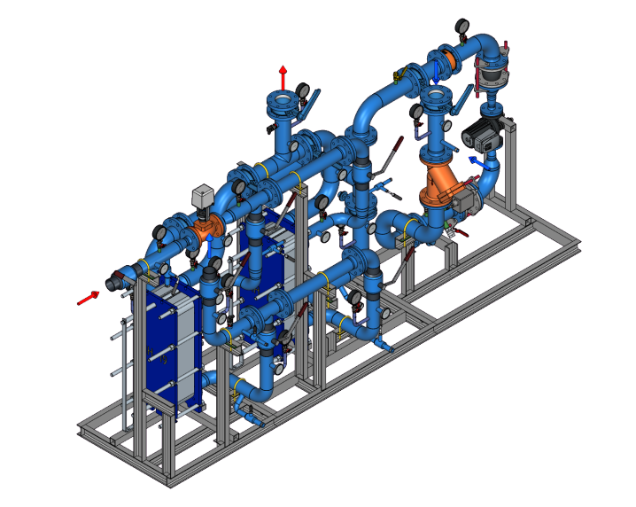 Блочный тепловой пункт БТП-HSR-040-065-C-S: для системы отопления (вентиляции) с резервом ПТО, Ду65, одинарный насос