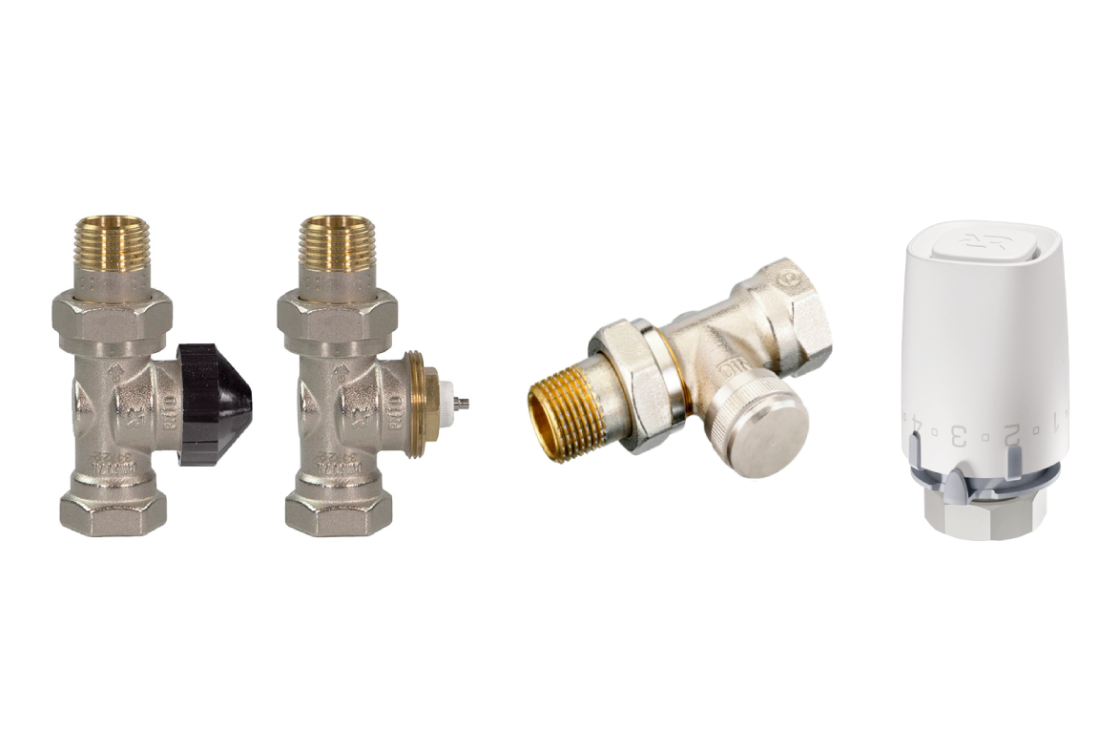 Комплект для двухтрубной системы отопления: клапан терморегулирующий 013G7014R + клапан запорный прямой 003L0144R + термостатический элемент 003G9001R (присоединение М30х1,5)
