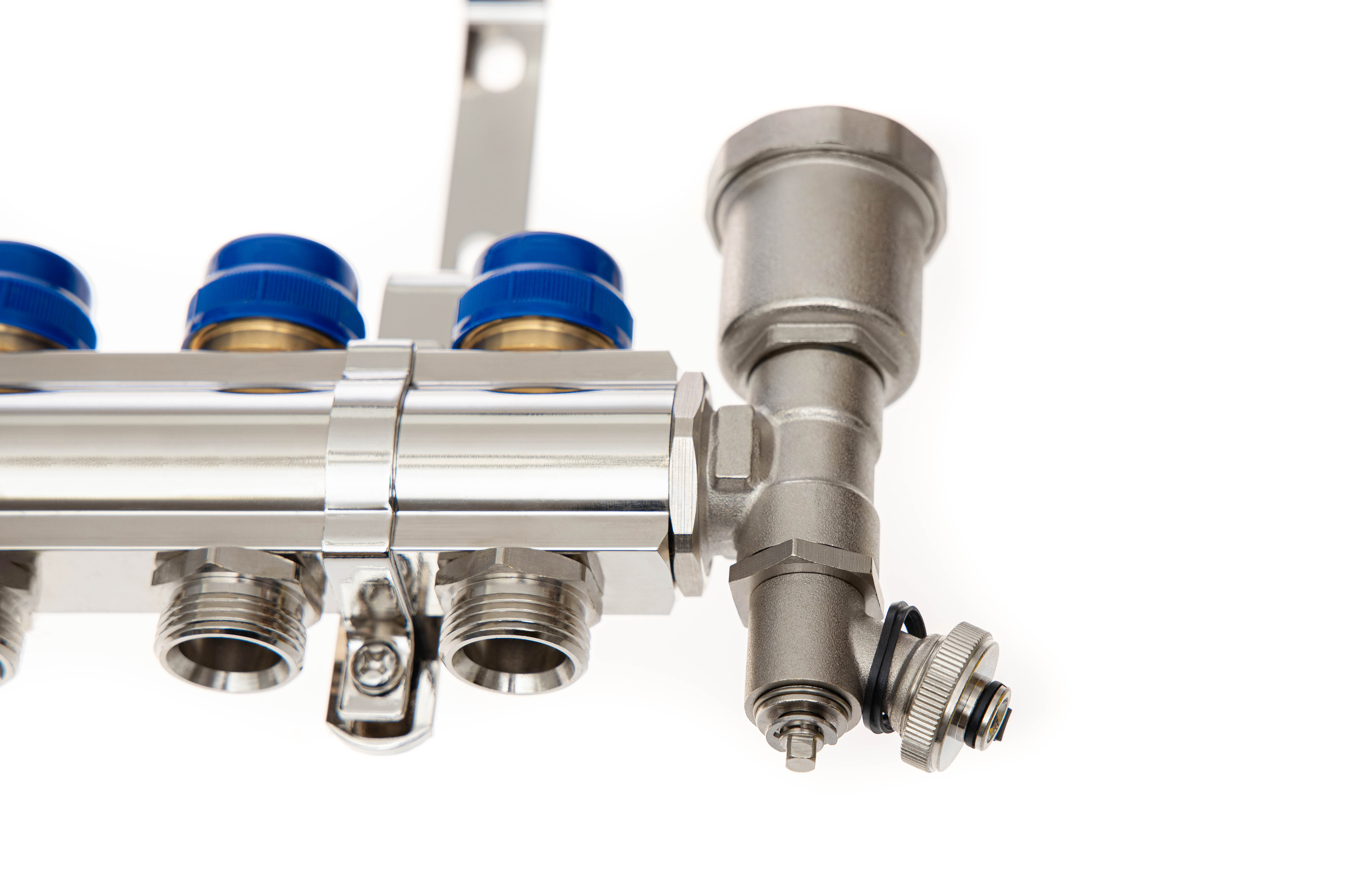 Ридан 088U0703R — Комплект коллекторов FHF-3R set с кронштейнами и торцевыми секциями с автоматическими воздухоотводчиками, 3 контура | Латунь никелированная | 90 | 16 | 10 | ||||
