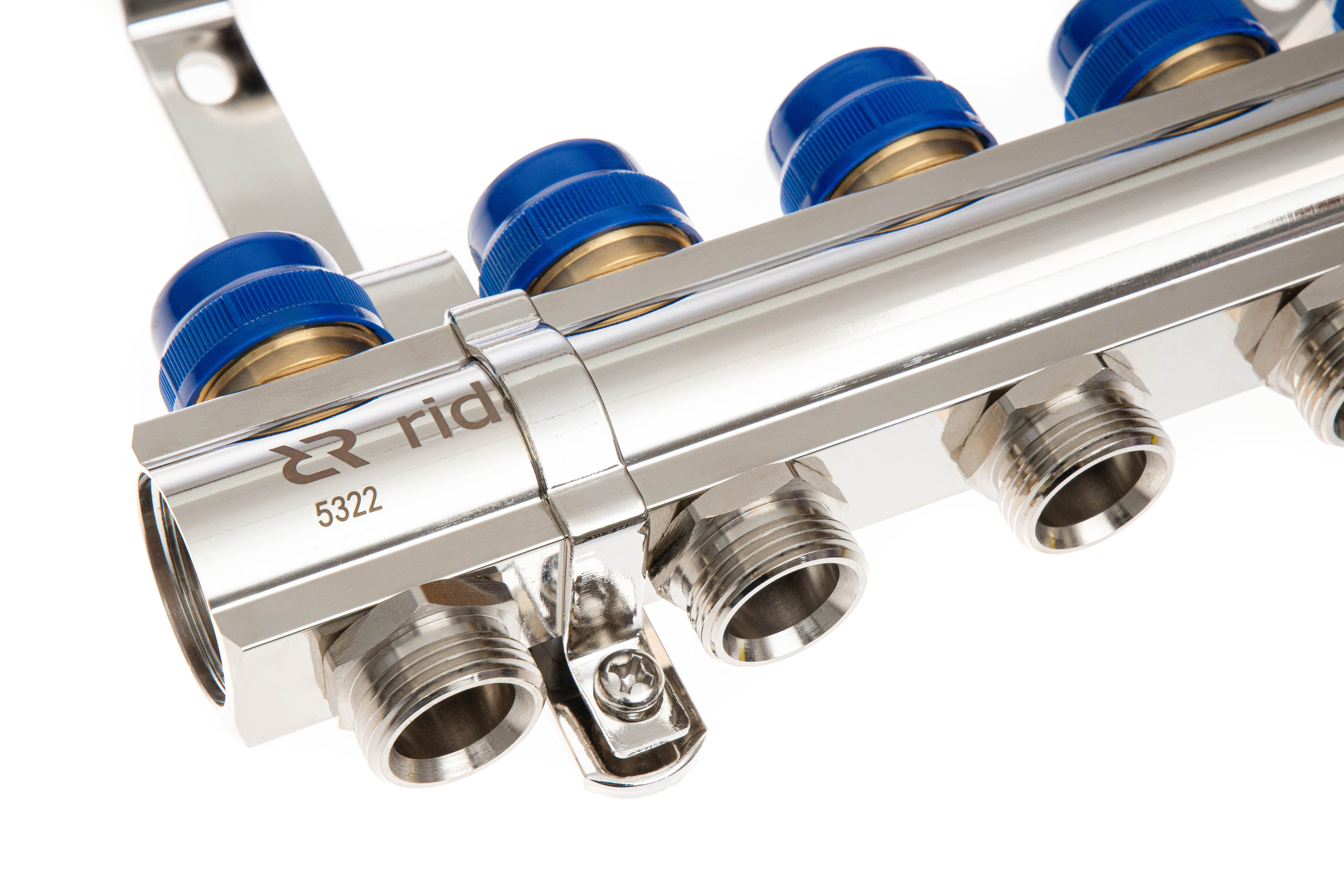Ридан 088U0705R — Комплект коллекторов FHF-5R set с кронштейнами и торцевыми секциями с автоматическими воздухоотводчиками, 5 контуров | Латунь никелированная | 90 | 16 | 10 | ||||