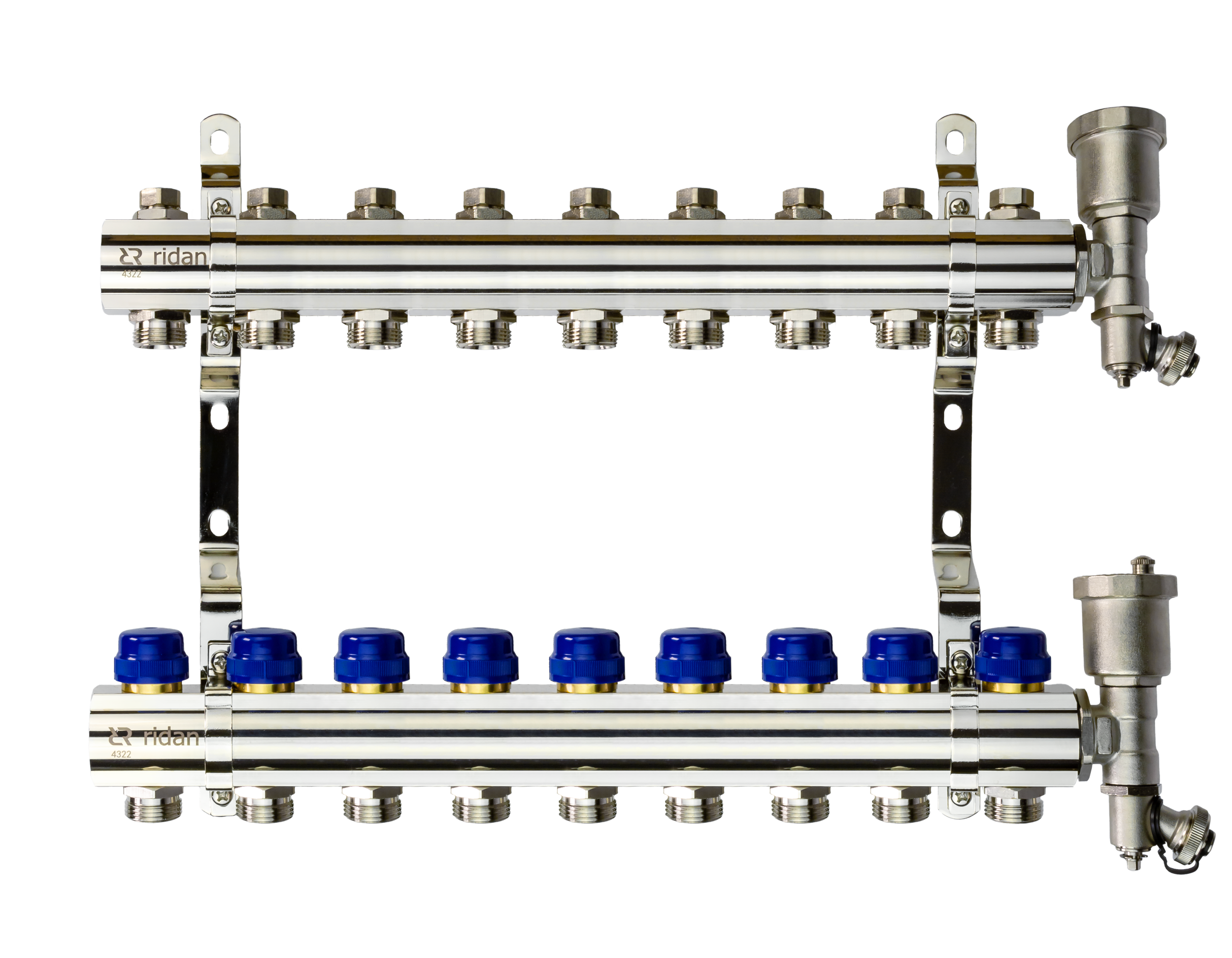 Ридан 088U0709R — Комплект коллекторов FHF-9R set с кронштейнами и торцевыми секциями с автоматическими воздухоотводчиками, 9 контуров