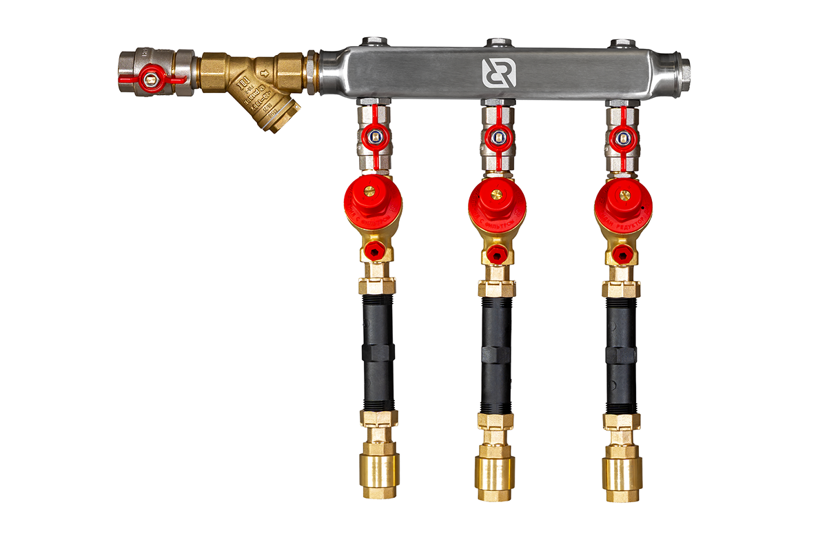 Название и артикул | Номинальное давление (PN), бар | Максимальная температура теплоносителя, °C | Пробное давление, бар | Ду /размер выходов из коллектора, мм | Подключение к стояку | |||