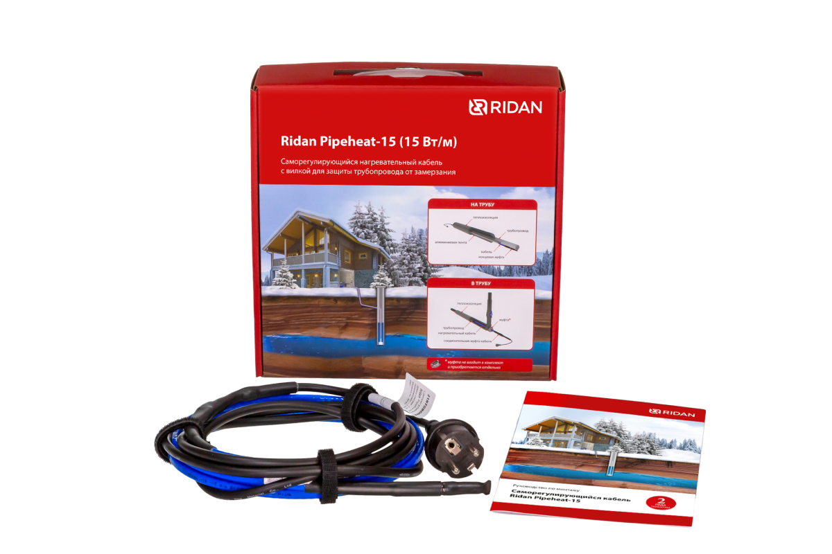 21RT0803R — Ridan Pipeheat-15 (Обогрев труб) саморегулирующийся нагревательный кабель 8 м, 120 Вт, с вилкой | Фторополимер | 230 В ~ | 8 м | -40°С | ||||